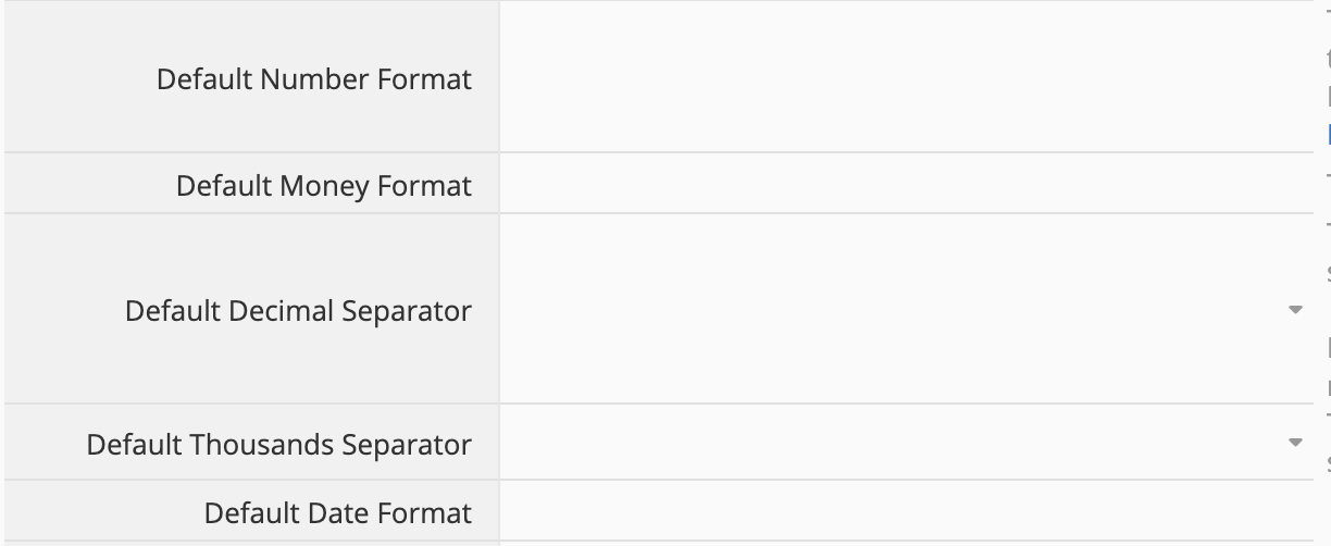 Just to clarify: the values you set in Company Settings only apply to new fields created later in design mode. For example, if you set the Default Number Format to 0, any new number field you add will follow that format: